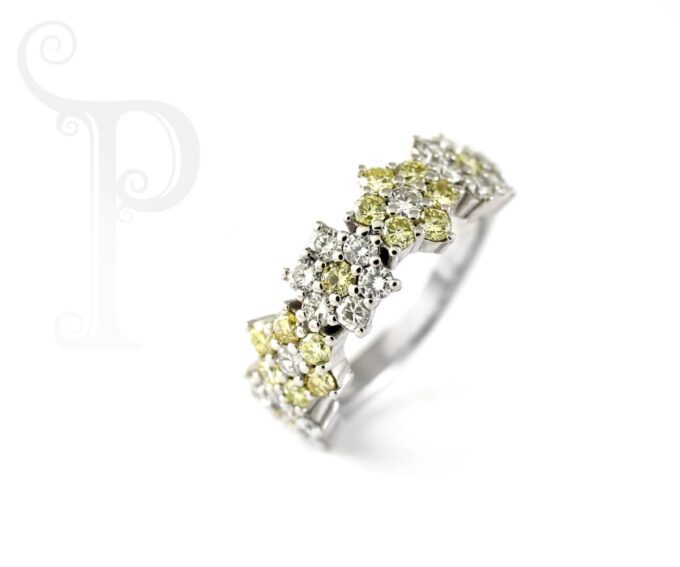 18k White Gold Yellow and White Diamond Daisy Eternity Ring
