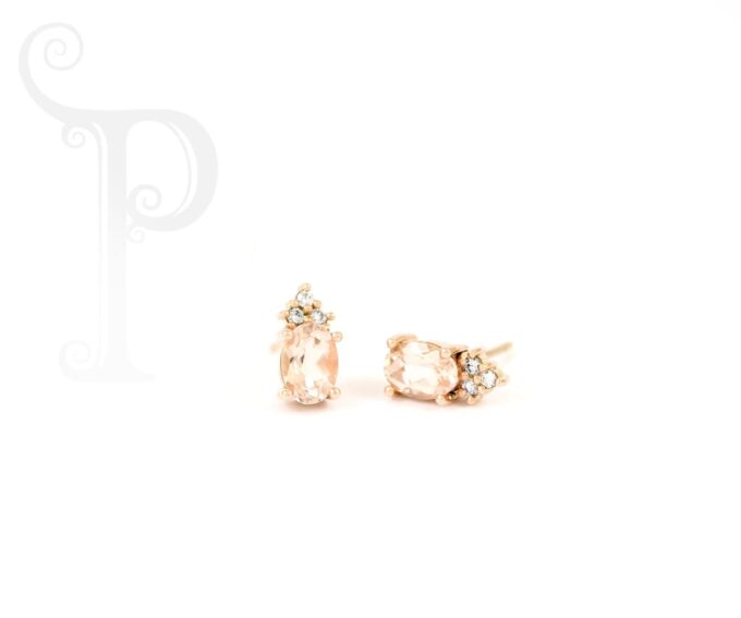 9k Rose Gold Oval Morganite and Diamond Earrings