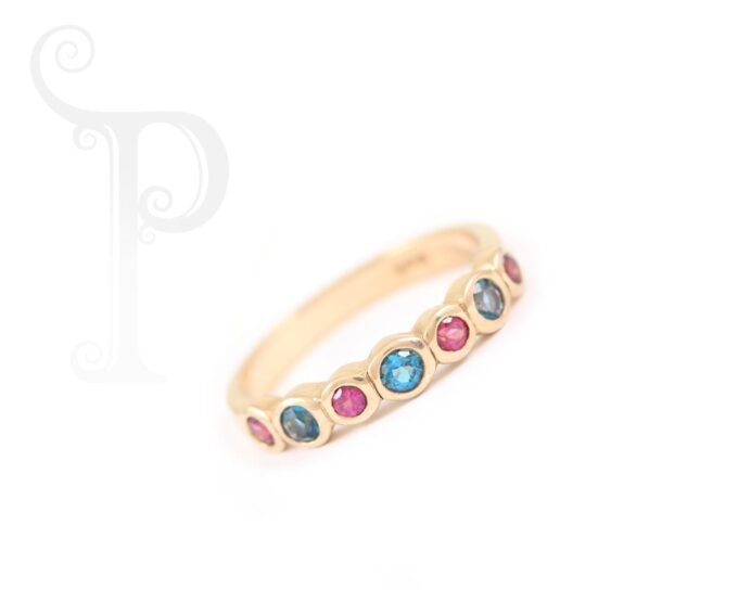 9k Rose Gold Rhodalite and London Blue Topaz Tube Set Eternity Ring