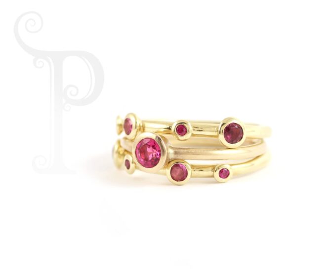 9k Rose Gold Tourmaline, Rhodalite and Pink Sapphire Stack Ring