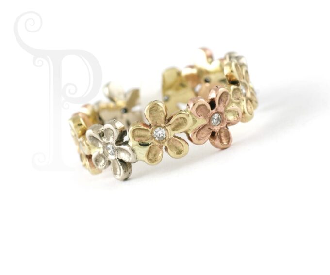 9k Rose, Yellow and White Gold Diamond Daisy Julie Ring