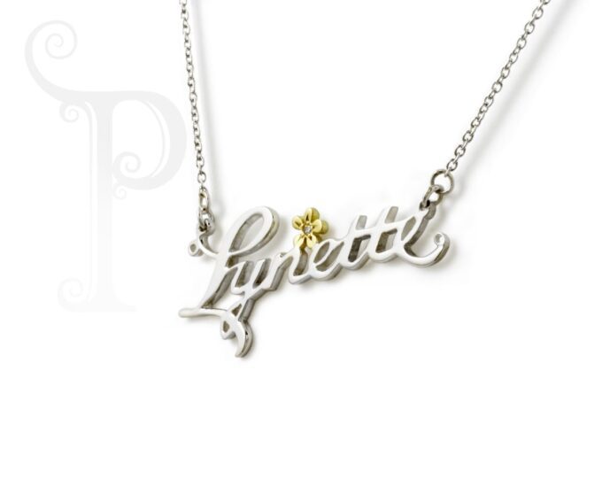 9k White and Yellow Gold Daisy Name Pendant