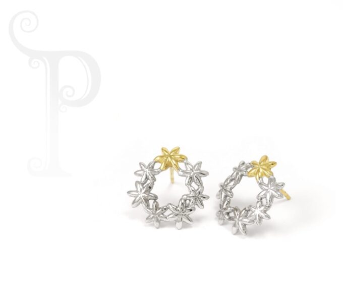 18k White and Rose Gold ‘Bernadette Circle of Life Daisy Earrings