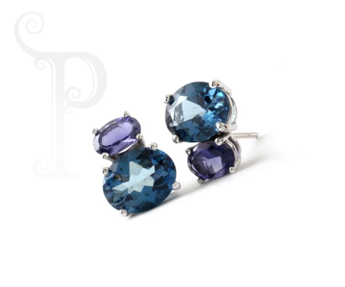 9k White Gold Double Oval London Blue & Iolite Earrings