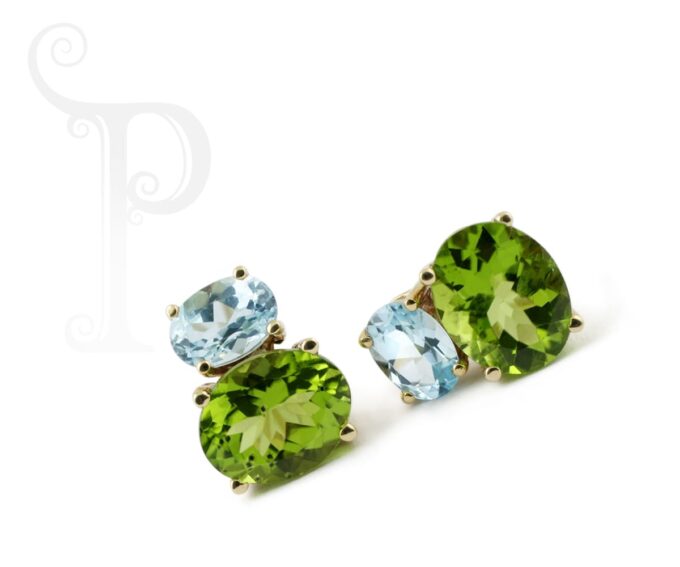 9k Yellow Gold Double Oval Peridot & Topaz Earrings