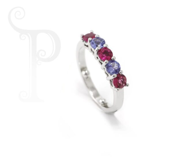 Platinim Tanzanite And Pink Tourmaline Eternity